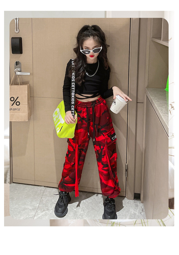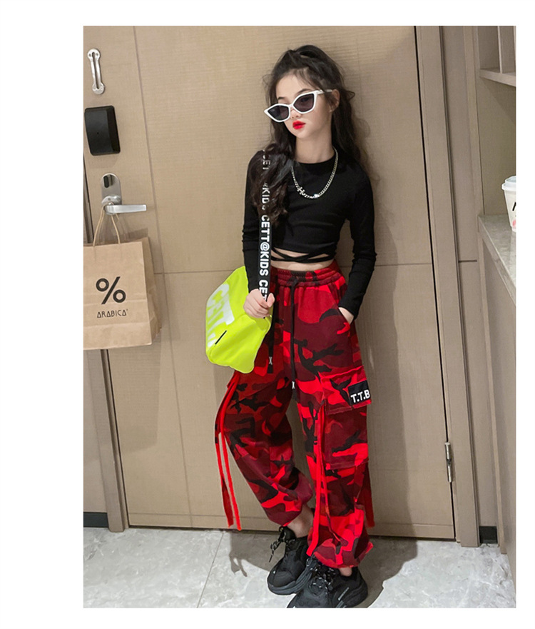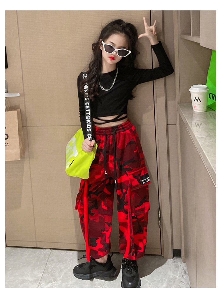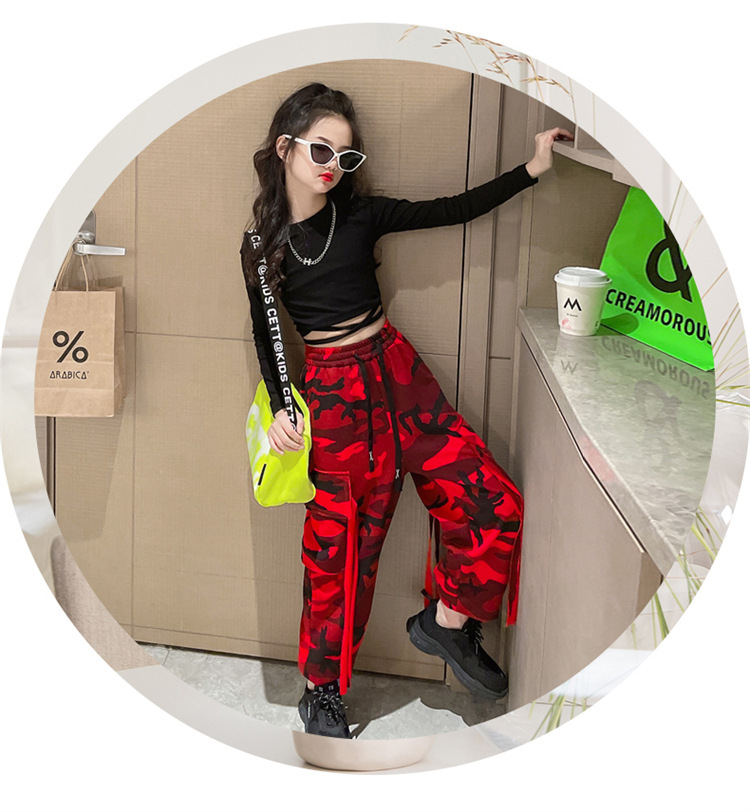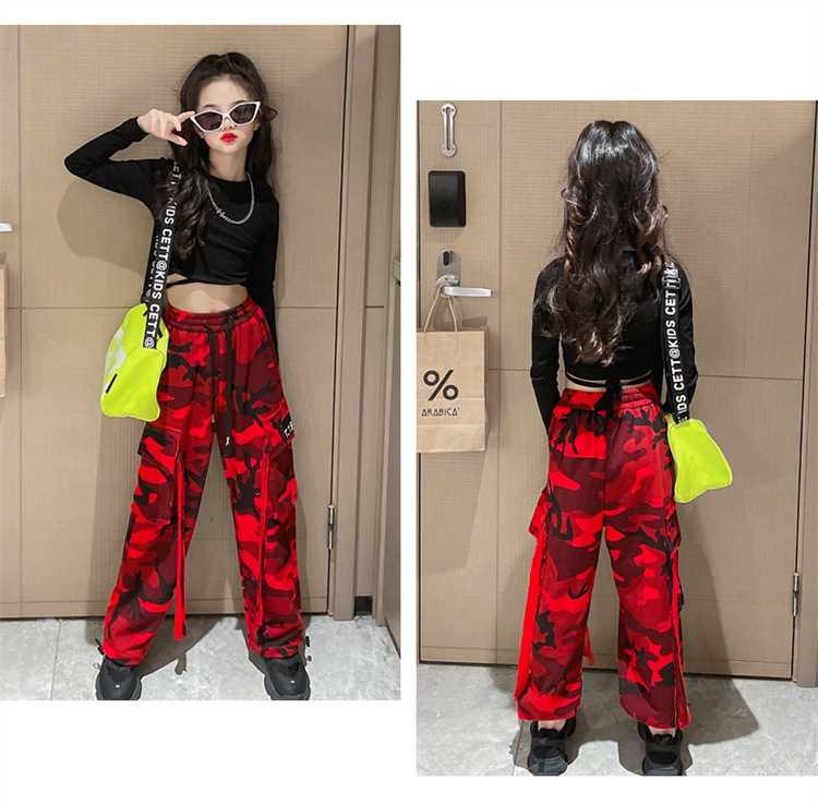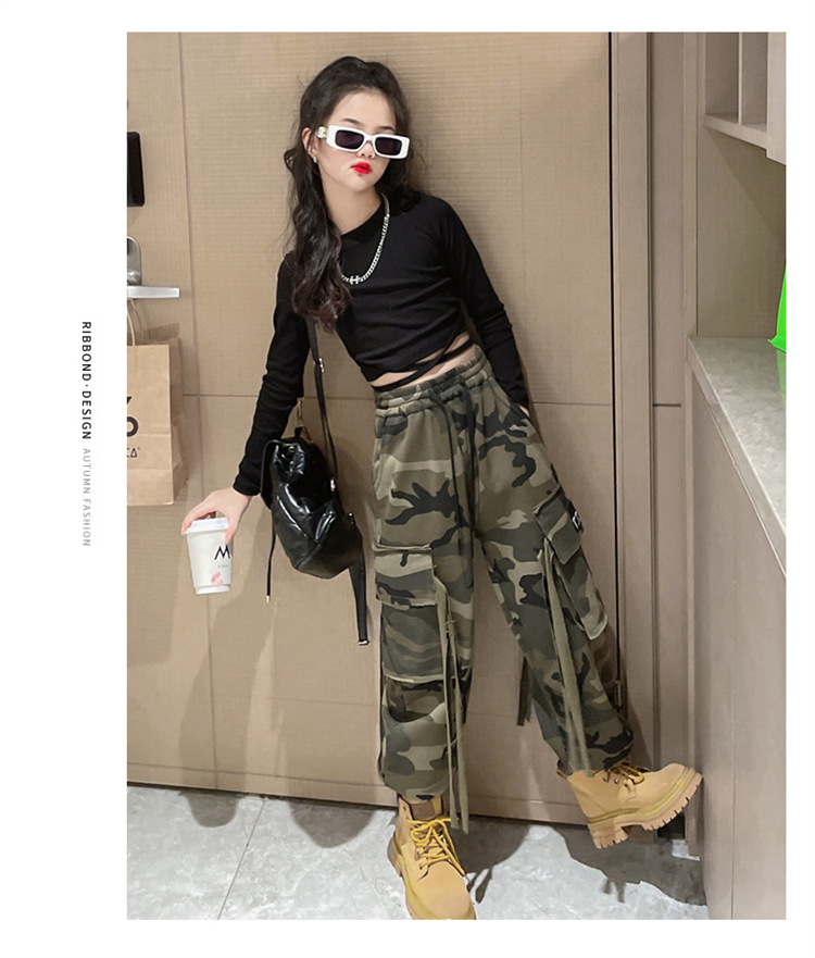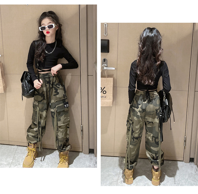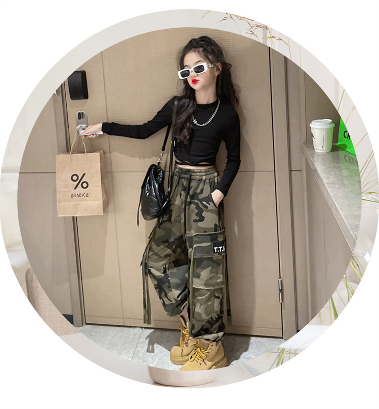 Pantalon camouflage pour filles, mode enfant décontractée, taille haute, jambes larges, collection printemps-automne 2025, tailles 8, 10, 12 et 14 ans.