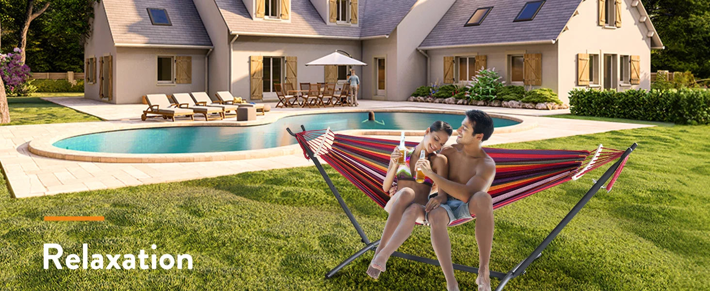 Hamac Gyroor avec support réglable - Lit hamac élégant avec sac de rangement, capacité de 272 kg