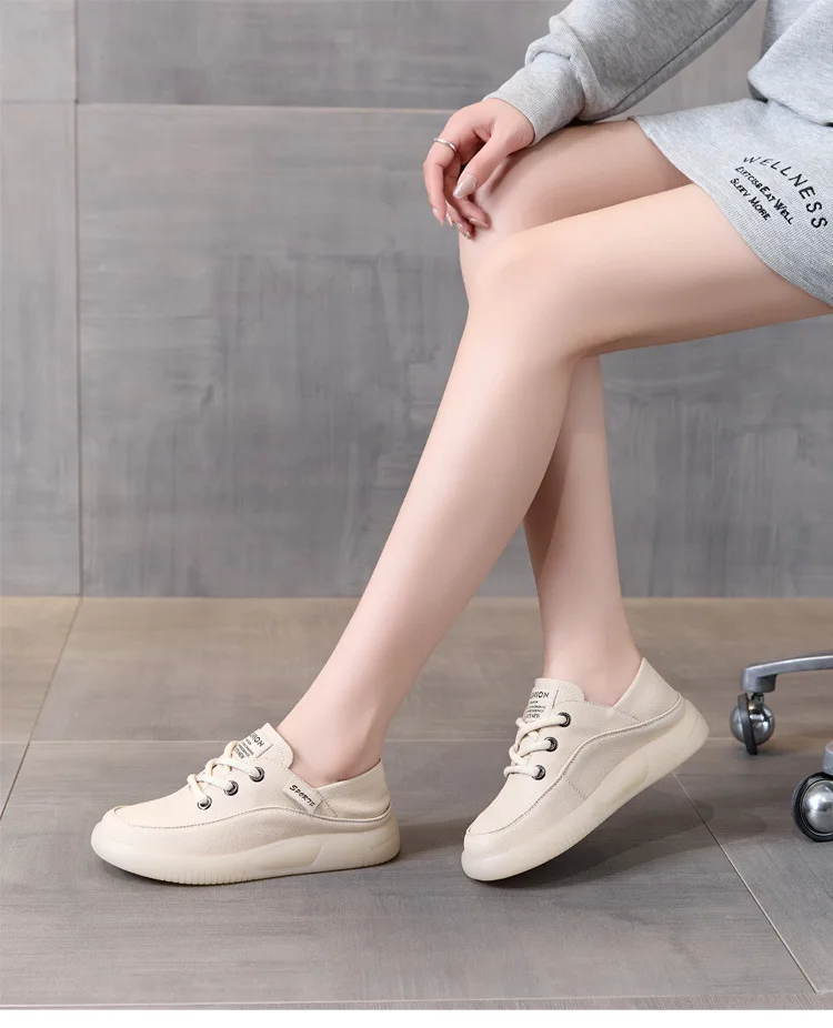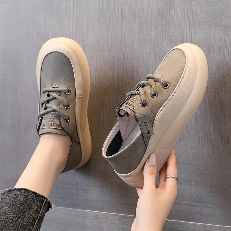 Chaussures plates Koznoy pour femmes, en cuir de vachette véritable, 3,5 cm, style mocassin à plateforme épaisse, style vulcanisé, idéales pour l'automne.