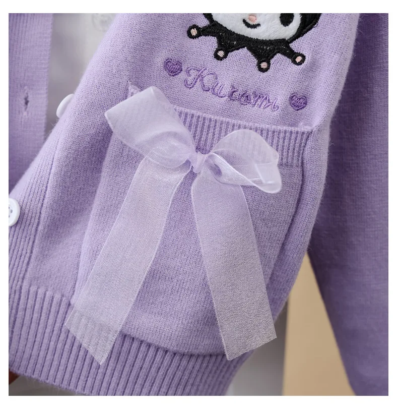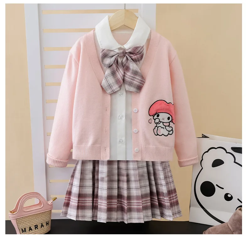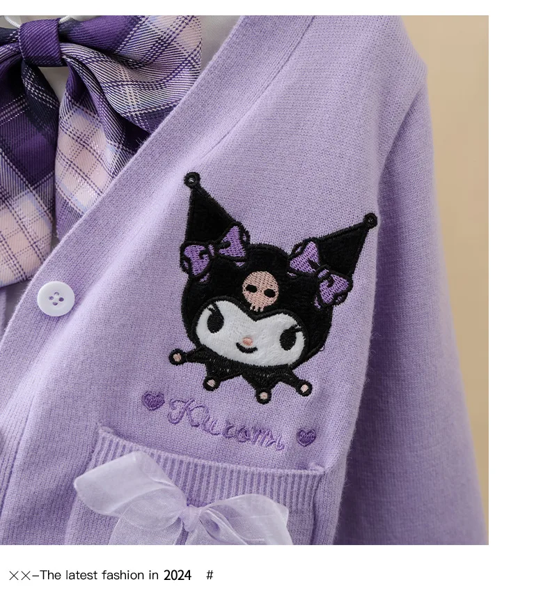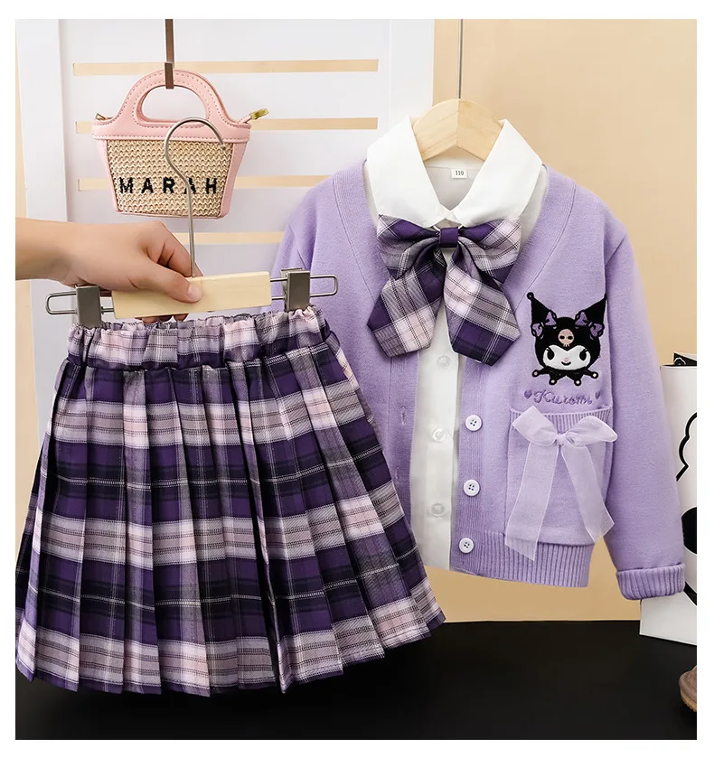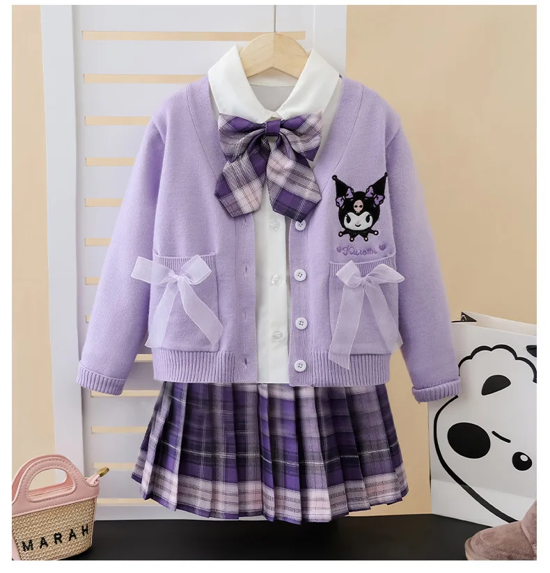 Ensemble enfant Kuromi, jupe plissée, cardigan, pull, style scolaire automnal, style princesse kawaii, uniforme scolaire JK