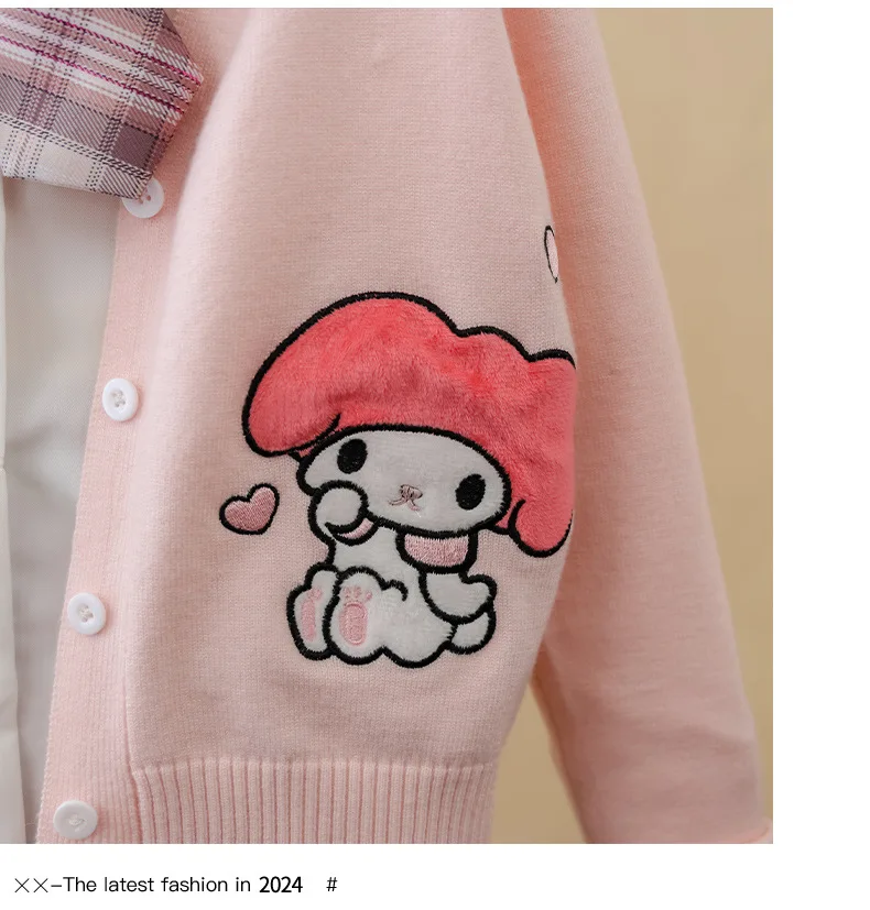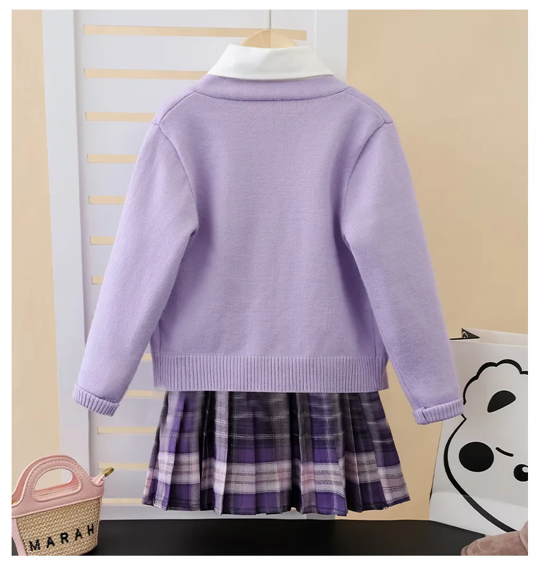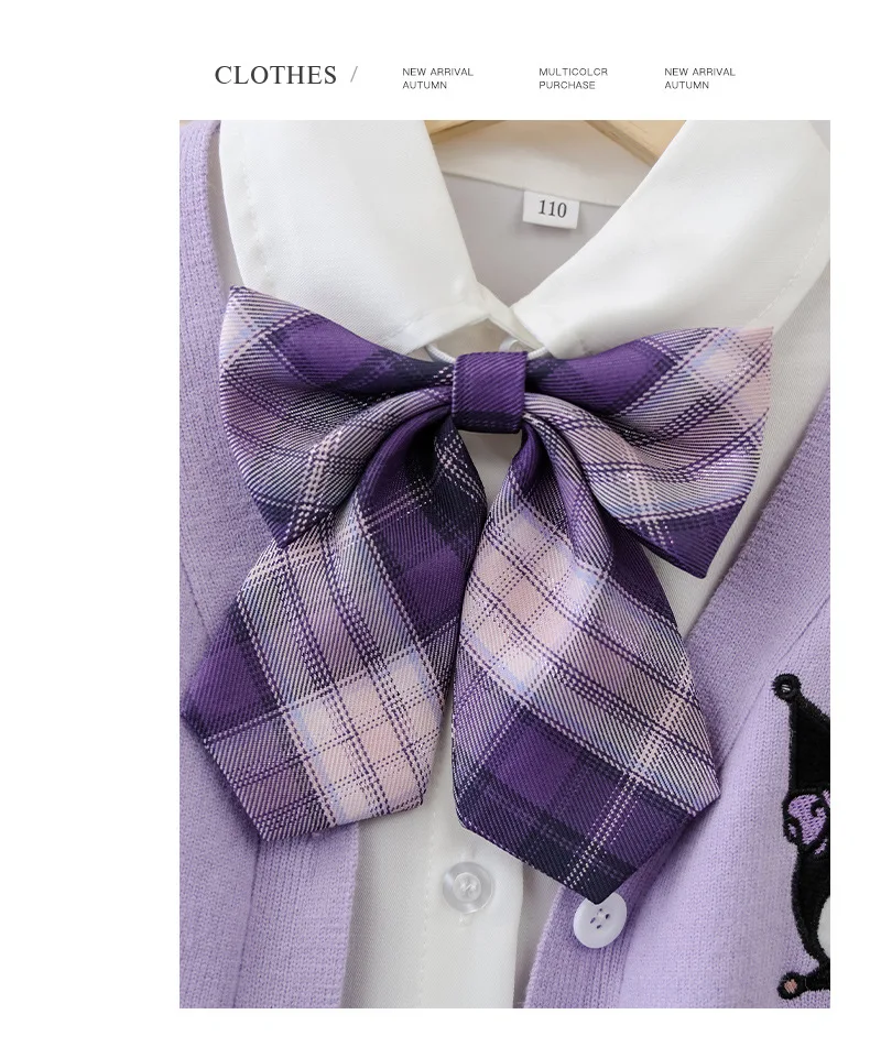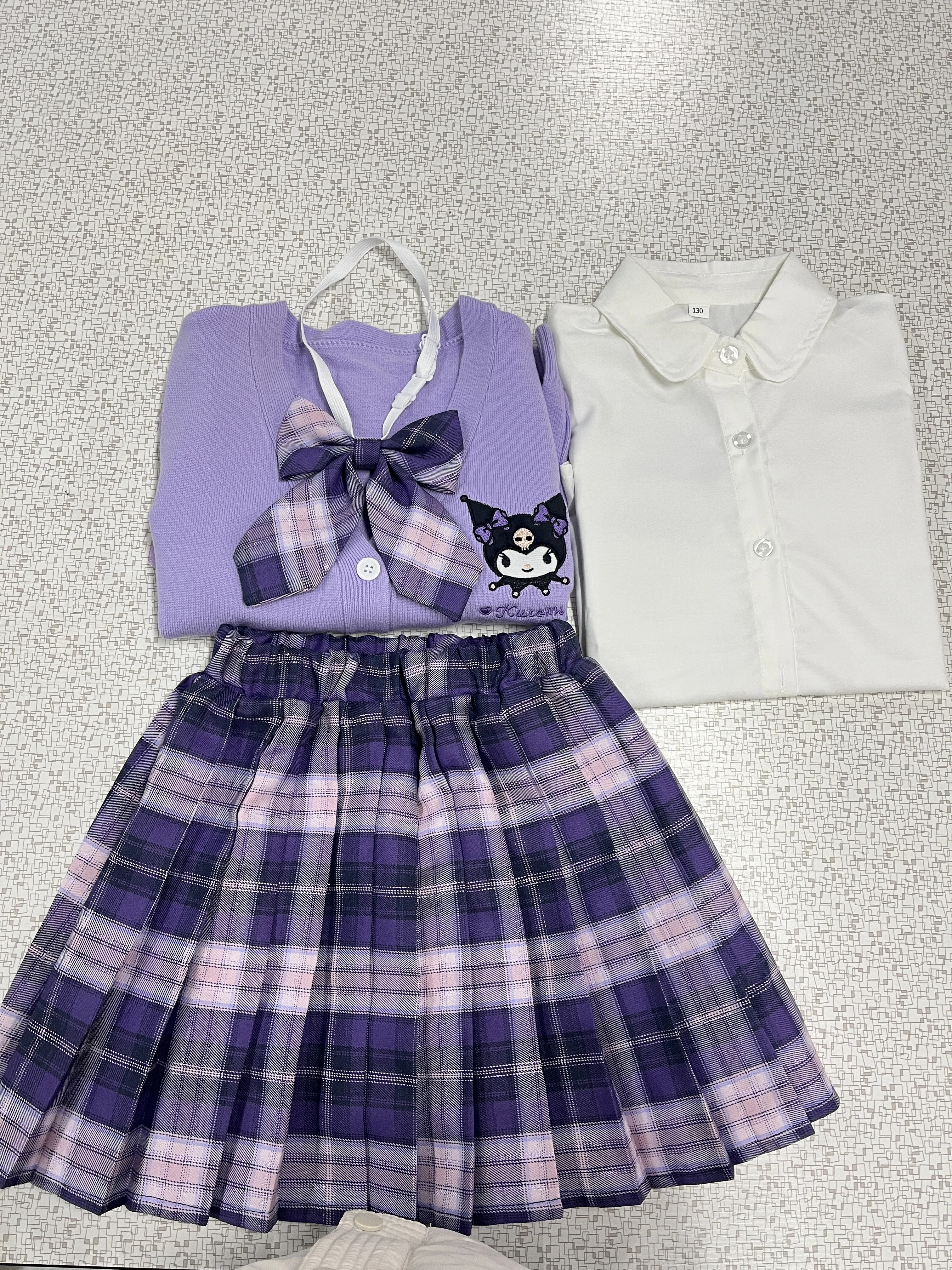Ensemble enfant Kuromi, jupe plissée, cardigan, pull, style scolaire automnal, style princesse kawaii, uniforme scolaire JK