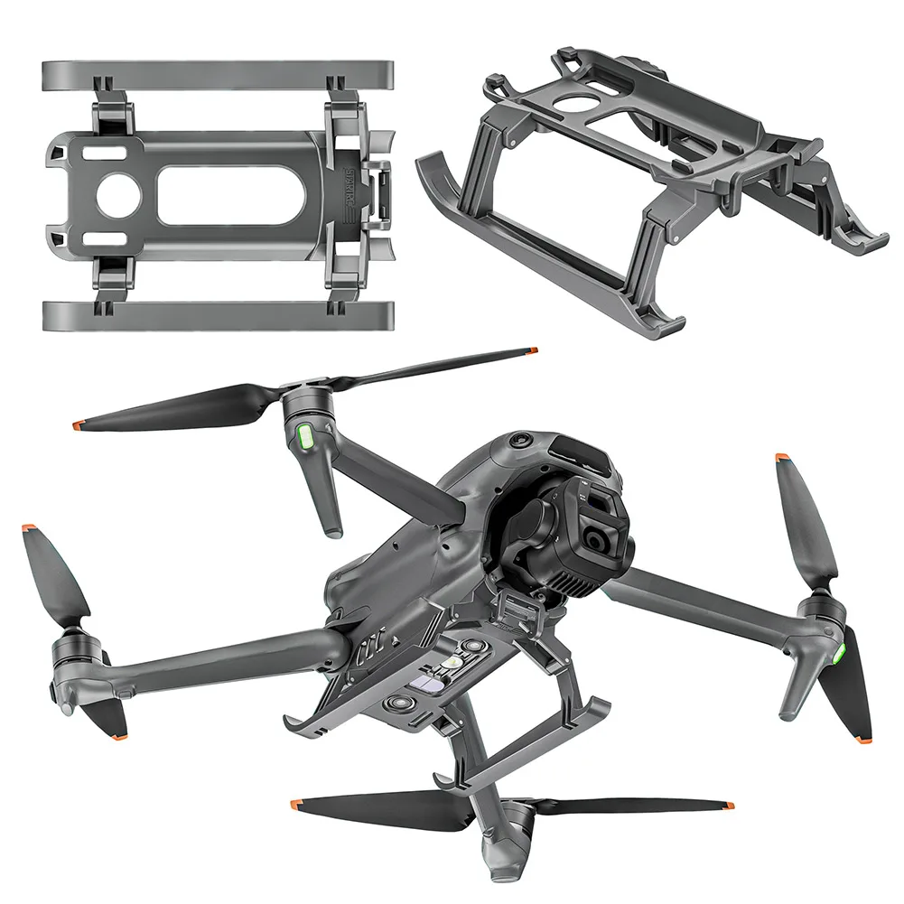 Feature: 1.Enhanced Stability: The drone landing gear is meticulously designed to avoid obstructing any indicators, cooling vents, or sensors, ensuring smooth and safe flights with minimal aerodynamic drag. 2.Increased Ground Clearance: With an extended leg protector, this accessory elevates your drone by 20mm, reducing impact during landings on uneven surfaces and preventing debris-related damage. 3.Lightweight Durability: Made from sturdy plastic, the expansion leg adds just 37g to your drone, allowing effortless takeoff while providing support. 4.Fit Design: Featuring a foldable and quick-release mechanism, the extended support legs stand guarantees easy installation and maintenance without compromising stability. 5.Portable & Protective: Compact and foldable, this accessory offers convenient storage and transportation, adding extra safety to your cherished device. Specification: Origin: Mainland China Applicable models: Compatible with DJI AIR3S/AIR3 drones Color: gray Material: plastic Product weight: 37g Product size: 132.70x71.80x35.50mm/5.22x2.83x1.4inch (folded)