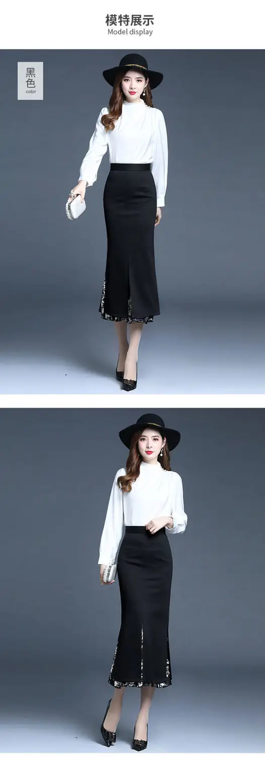 Jupe sirène mi-longue haute couture, collection printemps-automne.