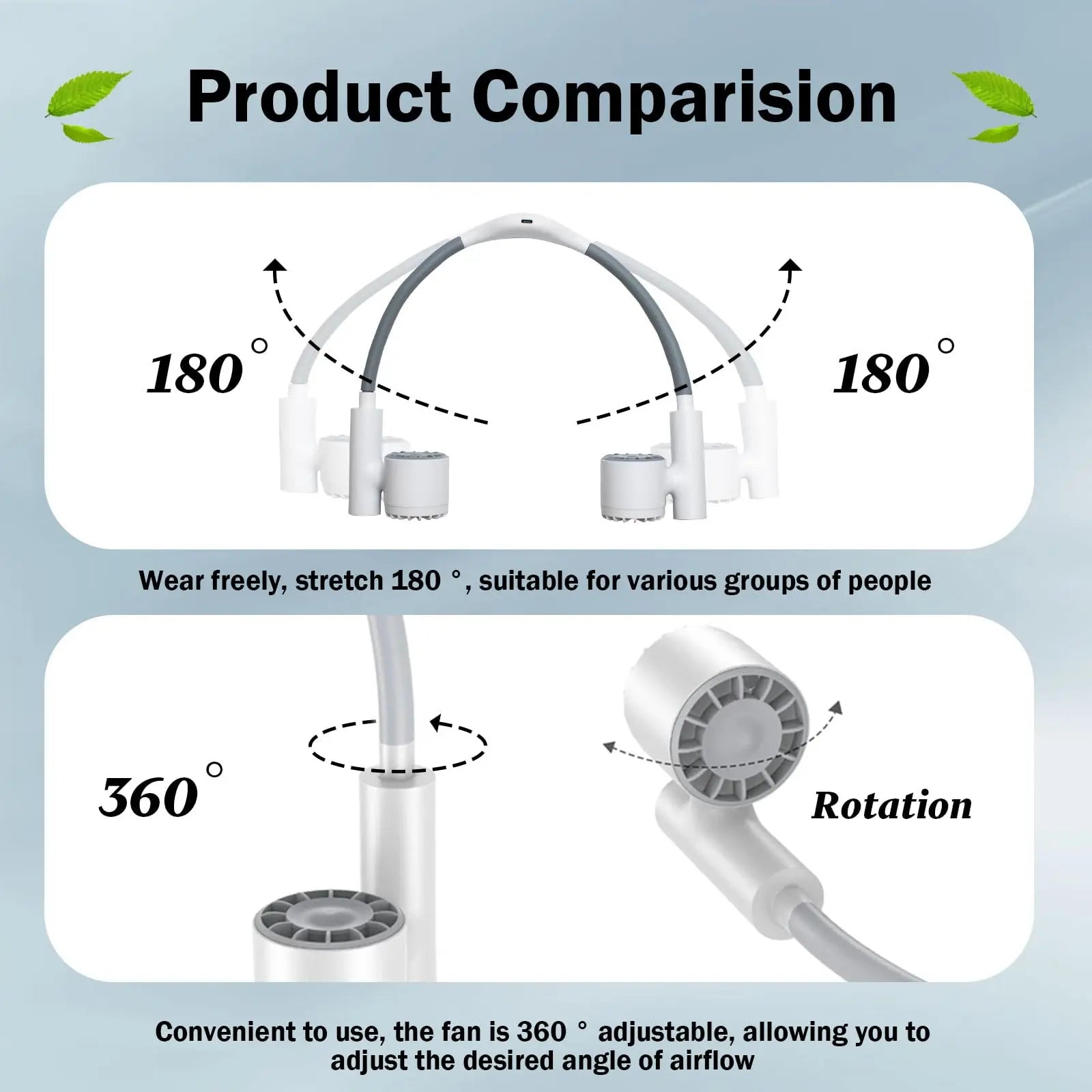 Comfortable and Portable: This wearable neck fan is designed with ergonomics and can be easily worn around the neck. The hose can be bent 360 ° to save storage space. Lightweight, more portable, and a great companion for travel and office.