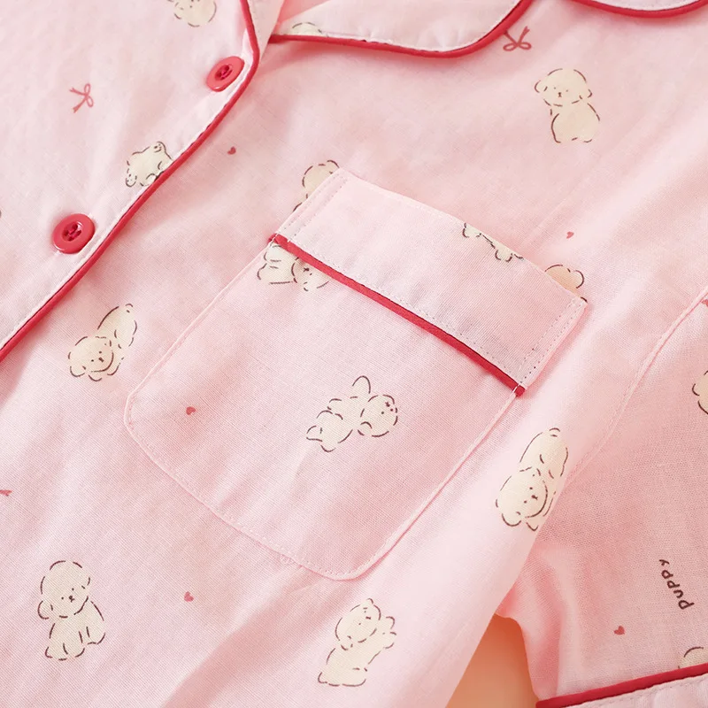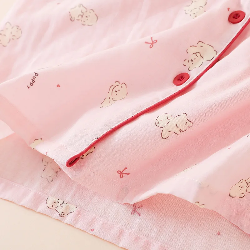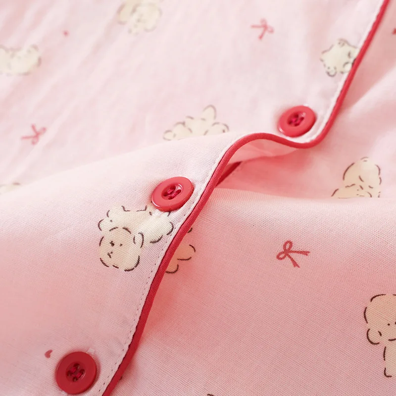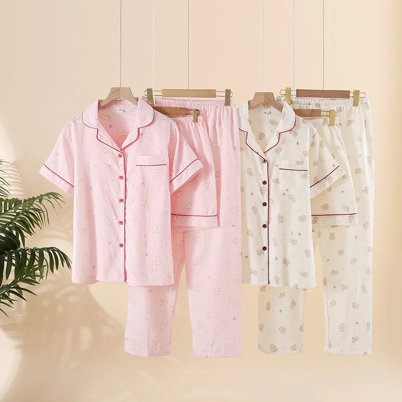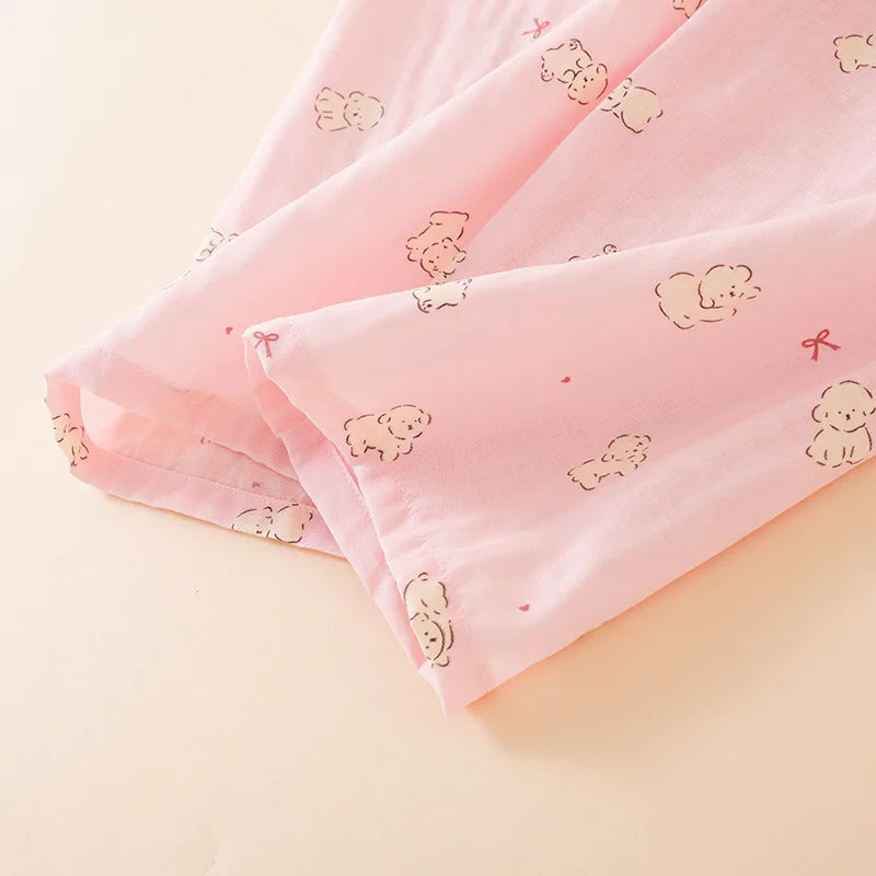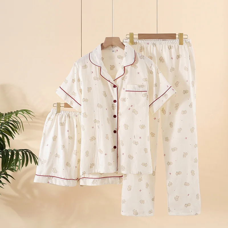 Summer Women Pajamas 3 Pieces Set 100% Gauze Cotton Female Sleepwear Bedroom Set Short sleeved long pants + shorts Woman Piiama