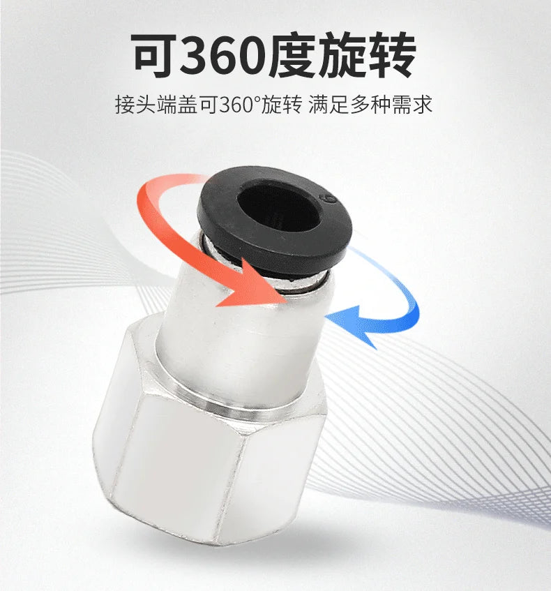 Raccord rapide pneumatique pour trachée, filetage femelle droit, PCF/4/6/8 mm/10/12/14/01-02-03-04