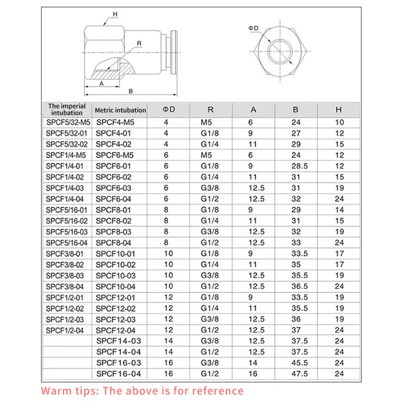 Diamètre du tuyau : 4/6/8/10/12/14/16 mm