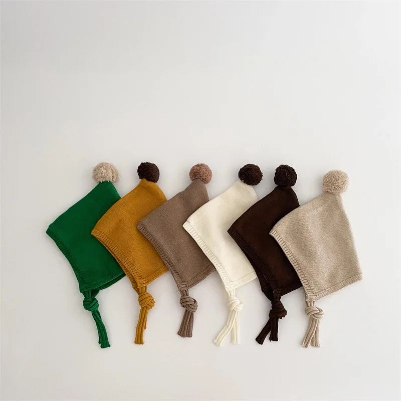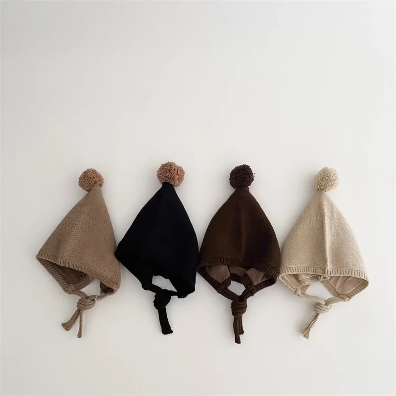 Bonnet d'hiver à pompon pour bébé, mignon, motif dessin animé, bonnet tricoté pour nouveau-né, chaud et en laine pour enfants (garçon/fille), protection des oreilles