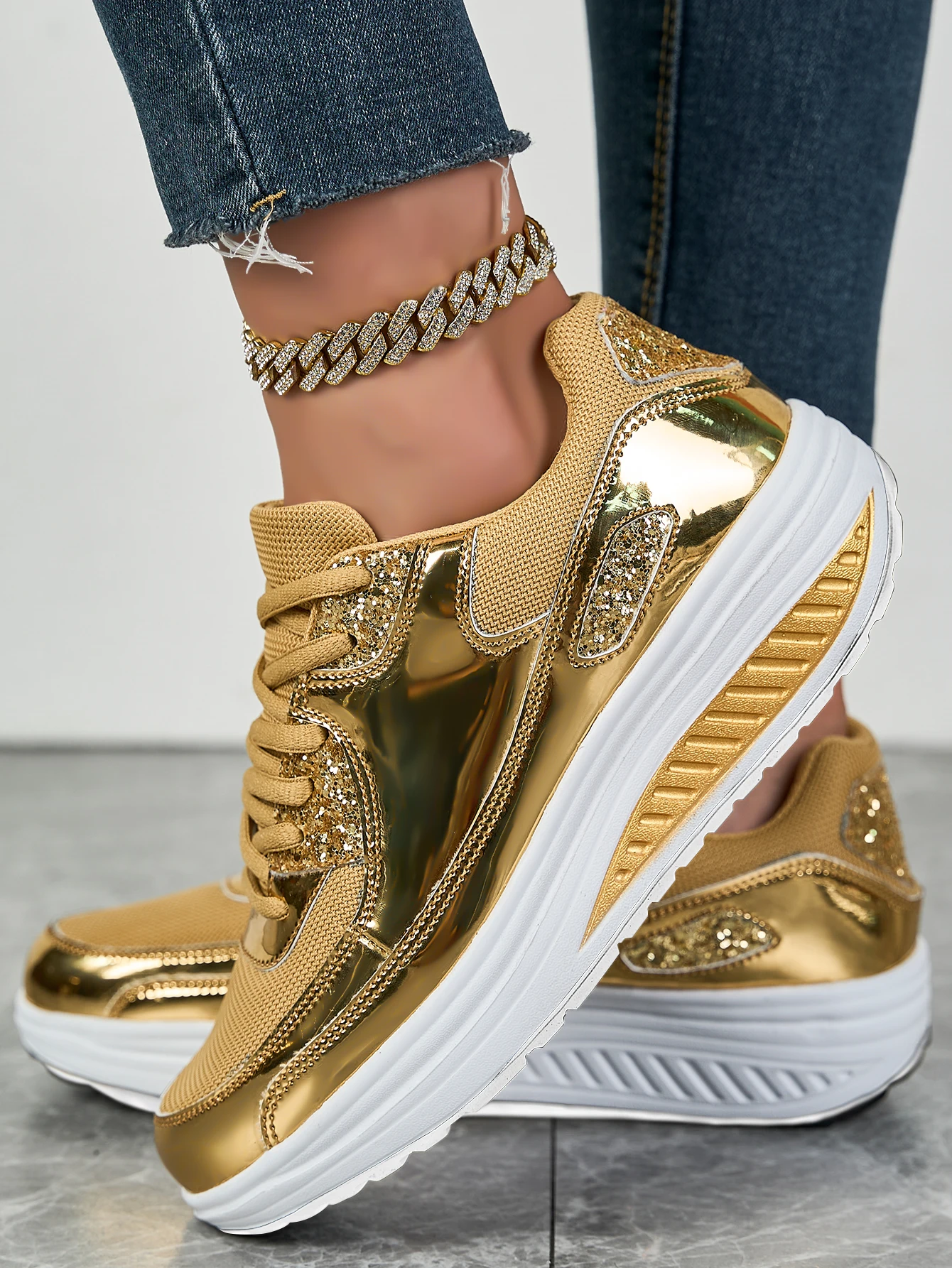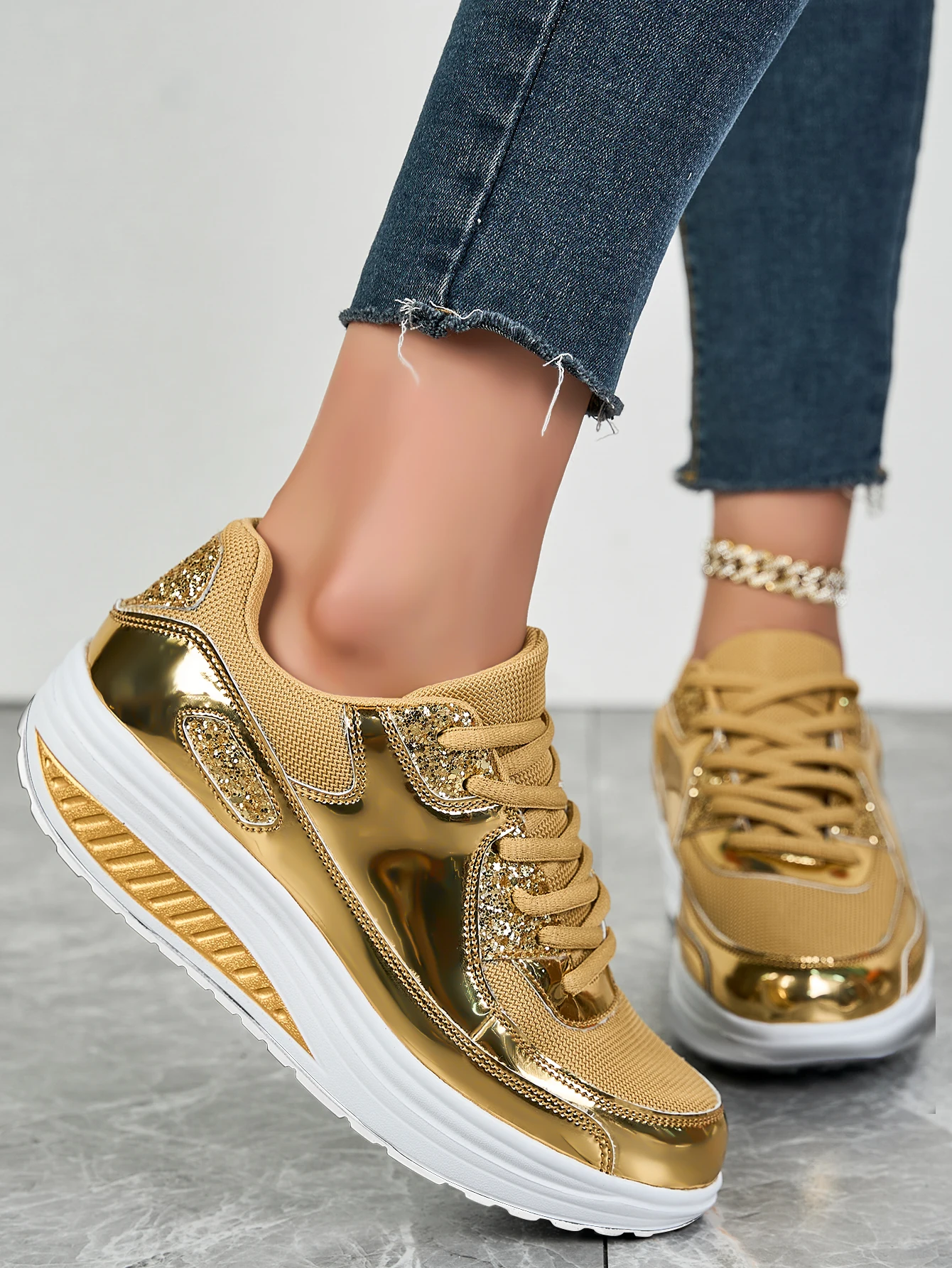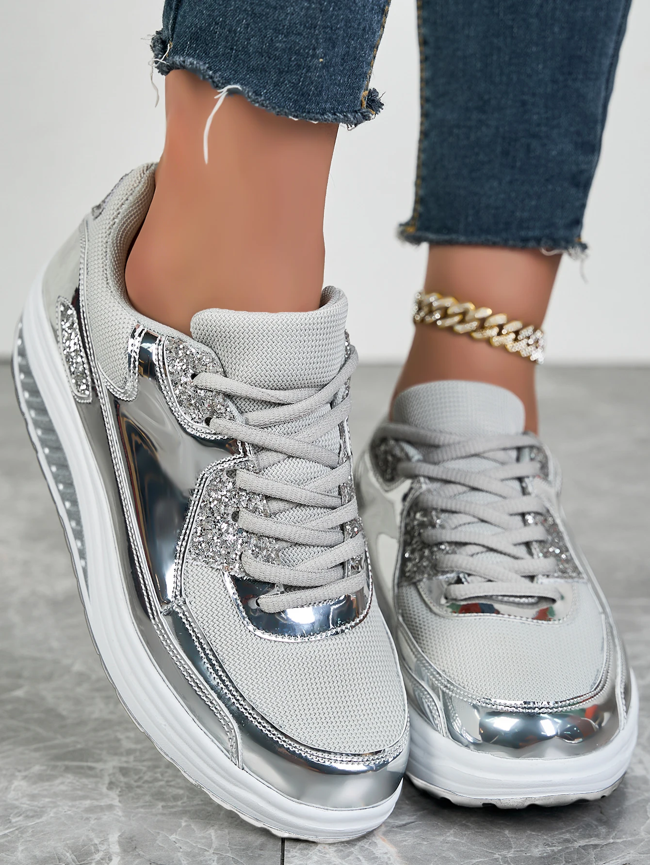 Women's flat mesh sports shoes spring and autumn new lace-up breathable comfortable fashion fitness women's shoes